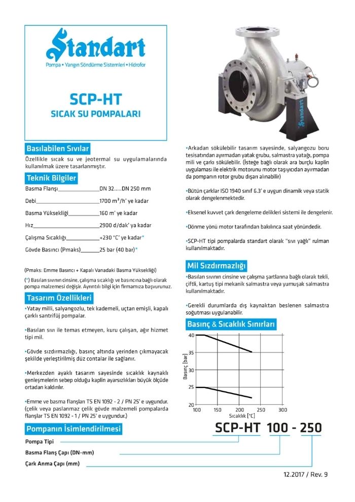 SCP-HT sıcak su pompaları, özellikle sıcak su ve jeotermal su uygulamalarında kullanılmak üzere tasarlanmıştır. Yatay milli, salyangozlu, tek kademeli, uçtan emişli ve kapalı çarklı yapısıyla yüksek sıcaklıklarda güvenilir performans sunar.